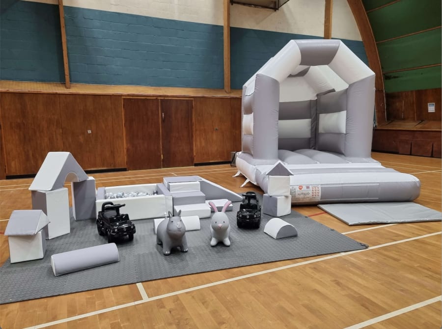 Hire our elegant grey and white soft play package alongside our toddler bouncy castle to add extra fun !!! our toddler castle in designed specifically for our little bouncers