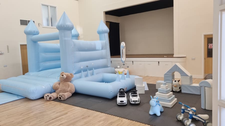full pastel blue package - turret castle, blue soft play & ball pond