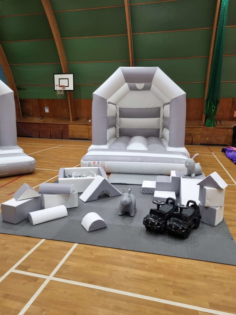 Hire our elegant grey and white soft play package alongside our stunning grey and white bouncy castle to add extra fun !!!